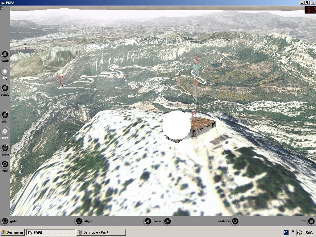 Specific tools had to be developped for terrain generation. Ground navigation support makes terrain dev a bit tougher : roads must be 'plane', even if on a hill side, lakes and see got to be strictly flat. While looking at ground from far (flight nav), small geometrics artifacts are better rendered using shaded raster or bump maps, when it comes to ground nav ... those artifacts have to be really volumic. Those constraints are very high when triangle count is the main concern.