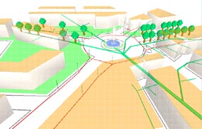 The production of virtual environments answers different kind of problems. A basic is the visualisation and comprehension of spatial structures and their implications. A virtual environment may be a component of a larger management tool, decision helping or simulation tool. It can be a common ground for other application, act as a visual framework or as a pedagogic tool... |